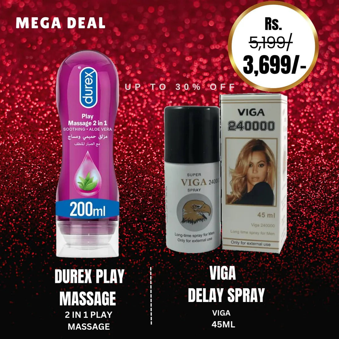 Durex Play Massage 2-In-1 Intimate Lube & Massage Gel, Aloe Vera, 200ml + Super Viga 240000 Delay Spray For Men -45ml