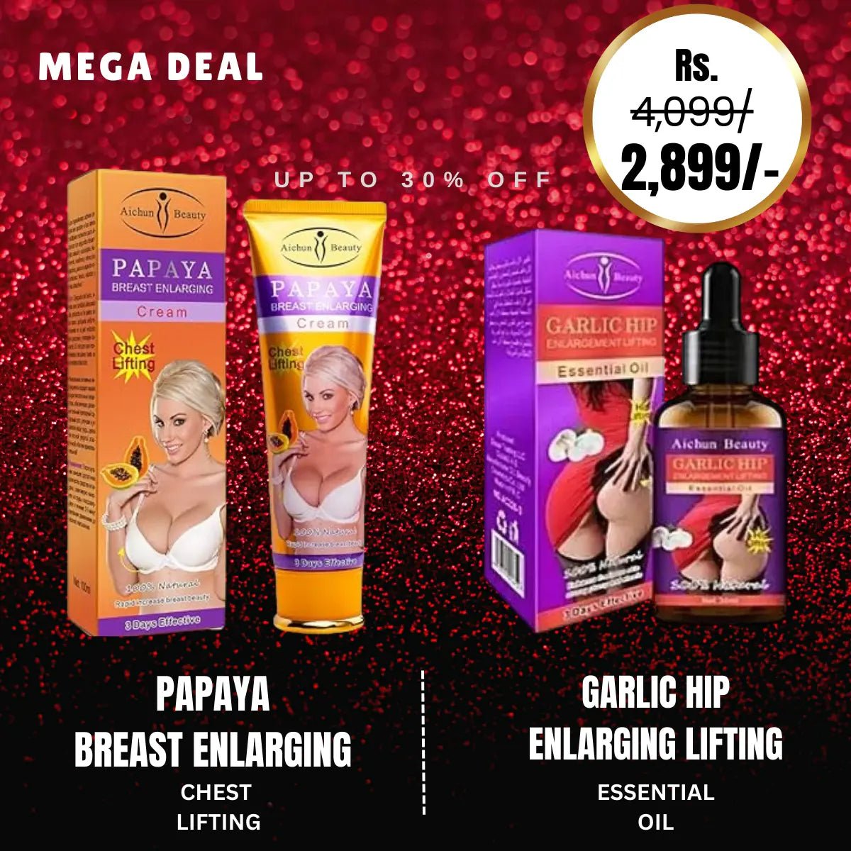 Aichun Beauty Papaya Breast Enlarging Cream 100 ML + AICHUN BEAUTY Garlic Hip Butt Enlargement Lifting Essential Oil 30ml