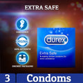 Durex Extra Safe Condoms have been designed to offer you maximum protection during sex. Made from slightly thicker latex and extra silicone lubrication, Extra Safe Condoms can offer peace of mind without having to forfeit any of the pleasure. Relax and let yourself go.