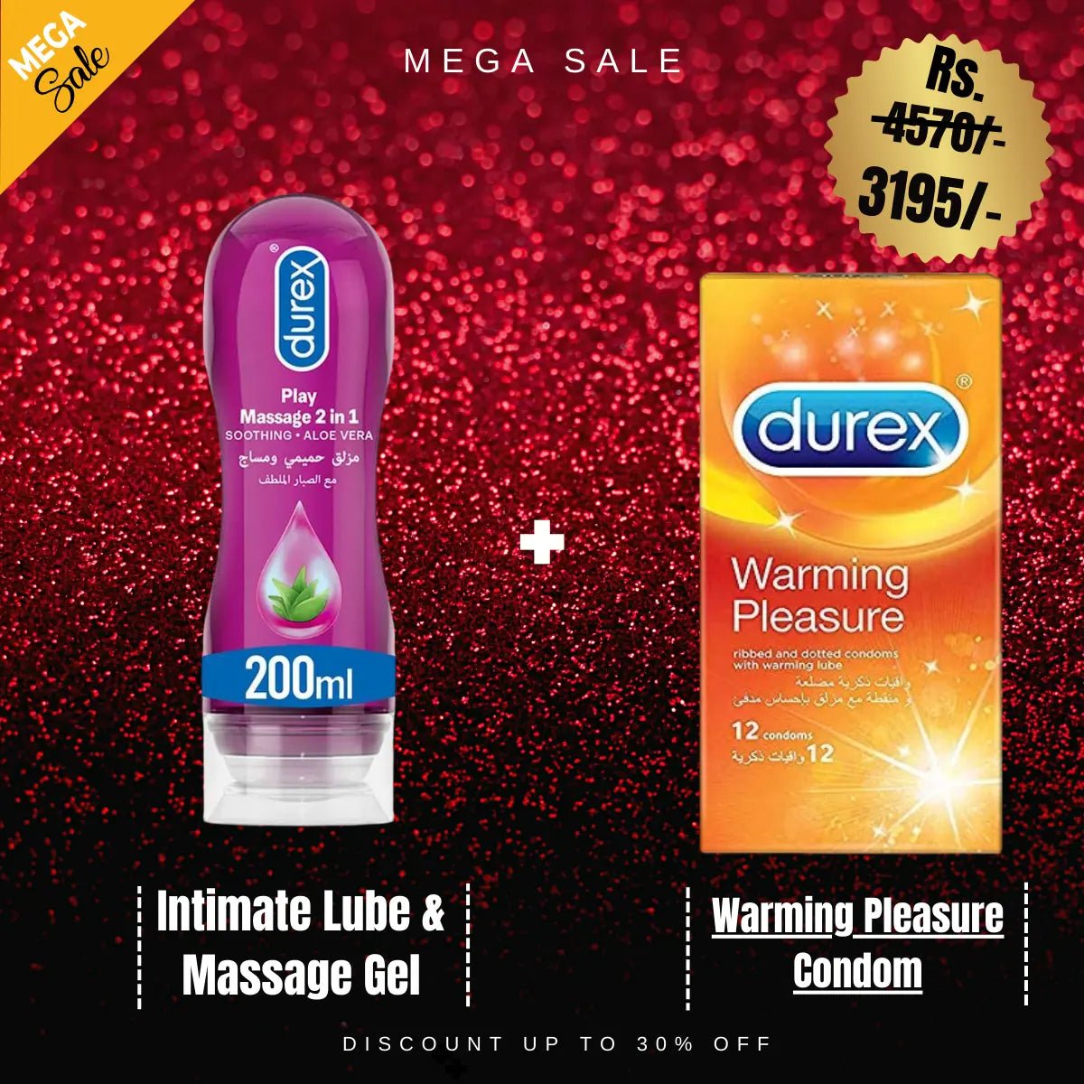 Durex Play Massage 2-In-1 Intimate Lube & Massage Gel, Aloe Vera, 200ml + Durex Warming Pleasure Condom - Pack Of 12