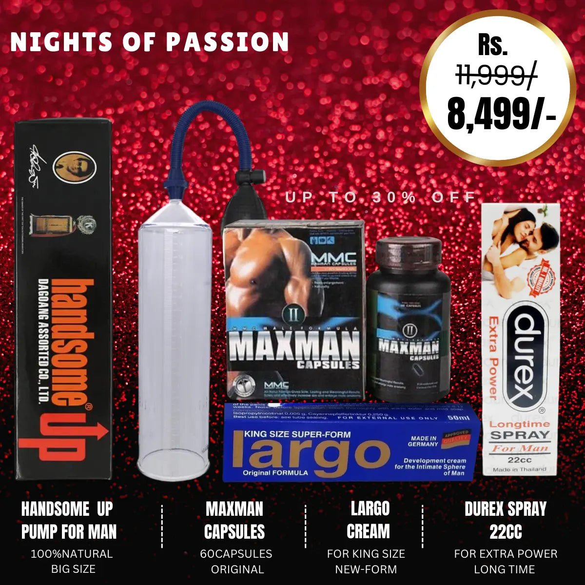 Elevate your personal care routine with this comprehensive combination of products designed to enhance male vitality and satisfaction. Start with the Handsome Up Penis Enlarger Erection Free Penis Pump Enlargement Vacuum, a discreet and effective tool for enhancing size and performance. Pair it with MaxMan Capsules, a trusted supplement formulated to support male health and vigor. Complement your regimen with Largo Cream, a top-rated solution for male enhancement and confidence. Finally, enhance your endurance with Durex Extra Power Long Time Spray, designed to prolong pleasure and satisfaction. Together, these products offer a holistic approach to male enhancement, helping you feel your best and perform with confidence.