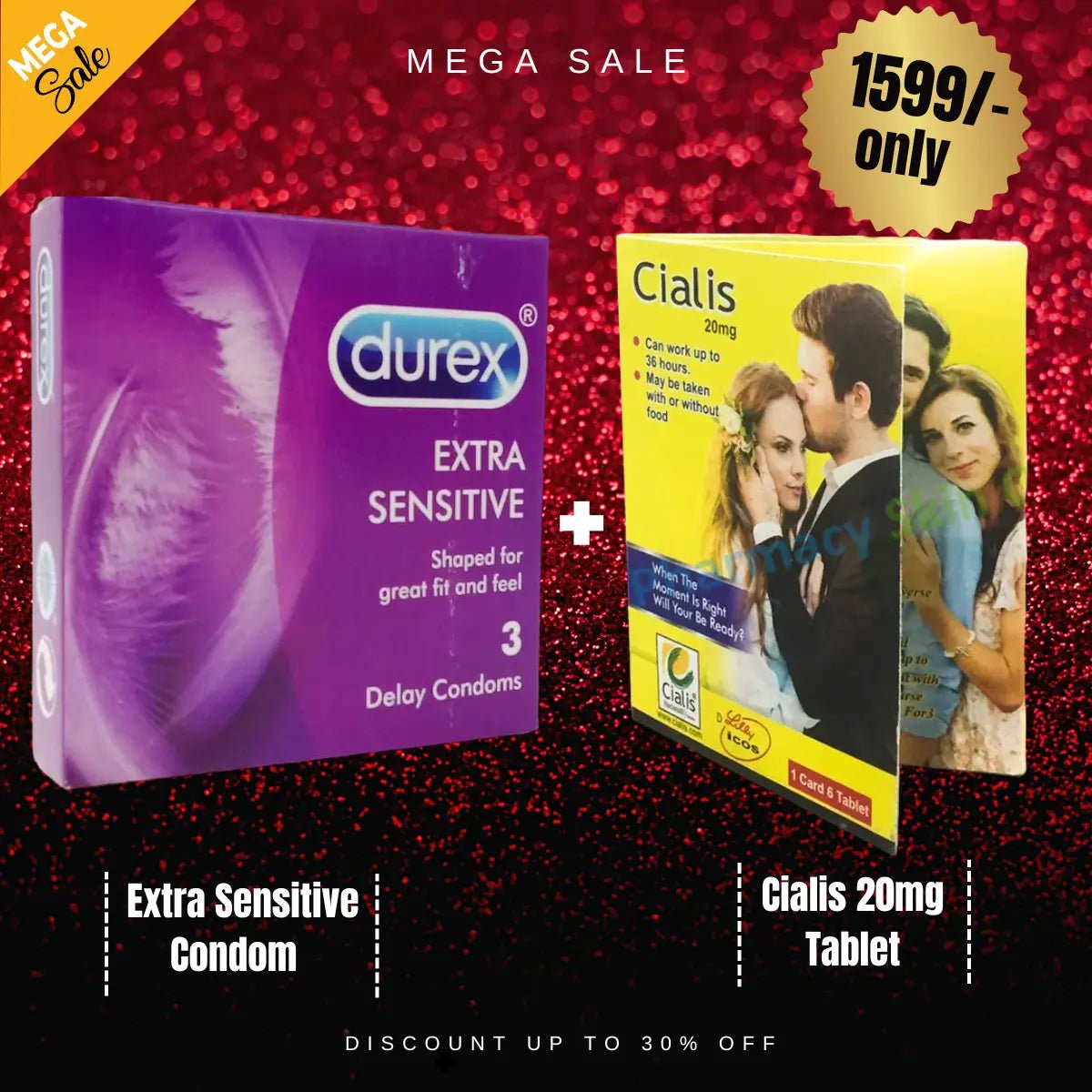 Pack Of 2 Durex Extra Sensitive Condom (Pack Of 3) + Cialis 20mg Tablet