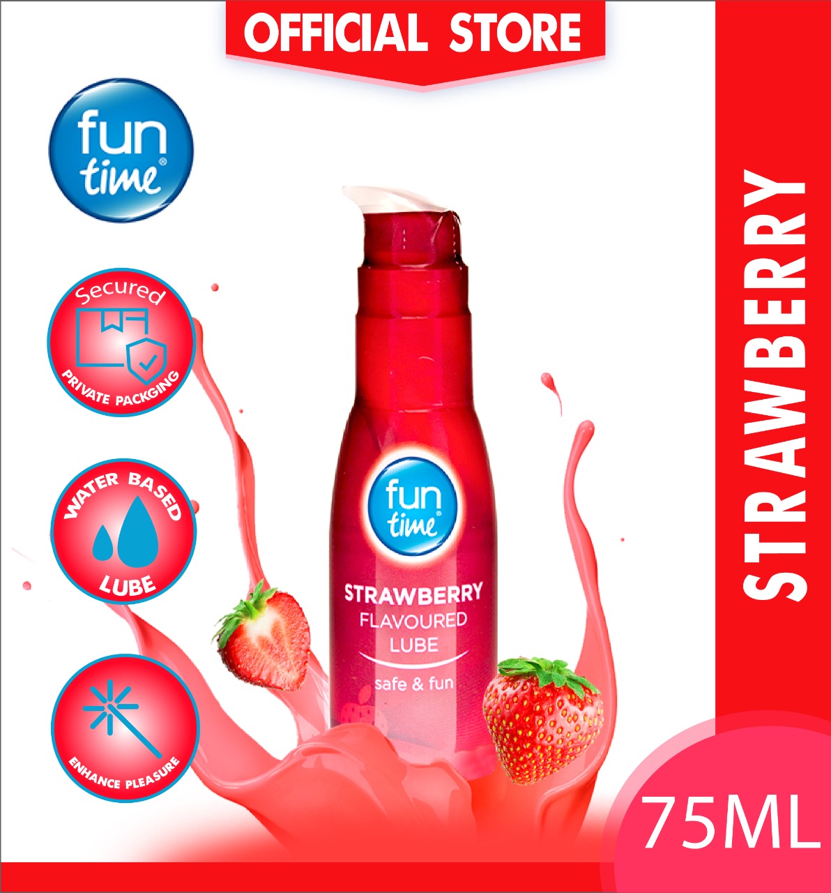 Playtime Strawberry flavoured Lube Water Based Lubricant - 75ml