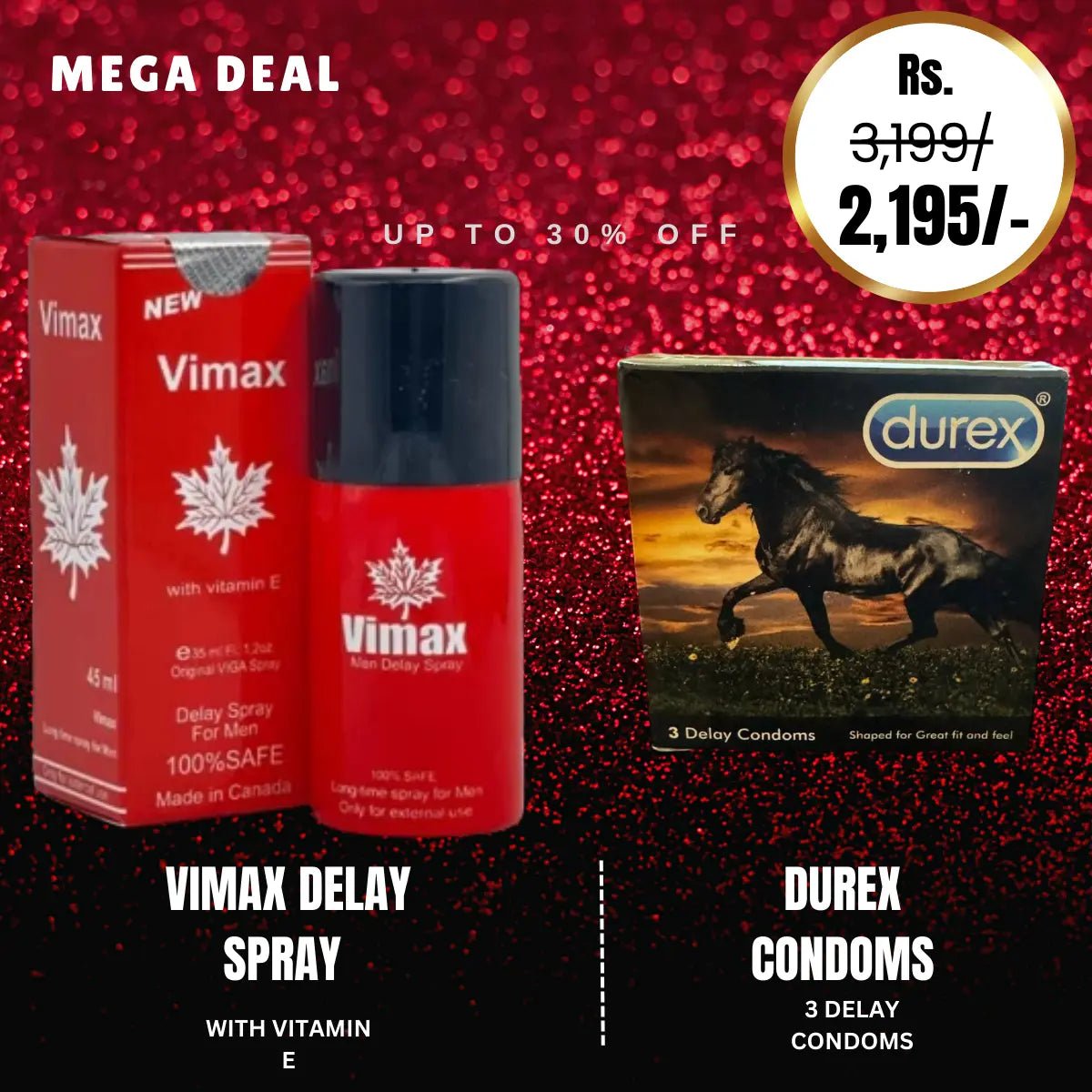 Vimax Delay Spray Men (45 ml) + Durex 3 Delay Condom - Maximize Pleasure, Minimize Interruptions